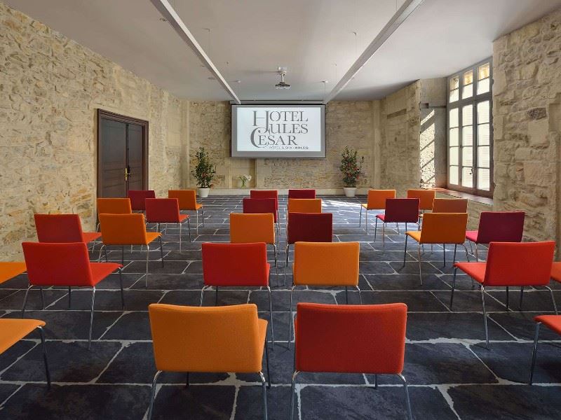 L’Hôtel Jules César Arles est particulièrement apprécié pour ses infrastructures dédiées aux événements professionnels. L'établissement dispose de trois salles de réception uniques, totalement équipées et modulables, pouvant accueillir divers types de séminaires, réunions, conférences ou autres évènements professionnels. Chaque salle et espace est équipée de matériel audiovisuel de pointe, incluant des vidéoprojecteurs, systèmes de sonorisation, et connexions Wi-Fi haut débit, assurant ainsi des présentations et réunions efficaces lors de votre évènement professionnel.