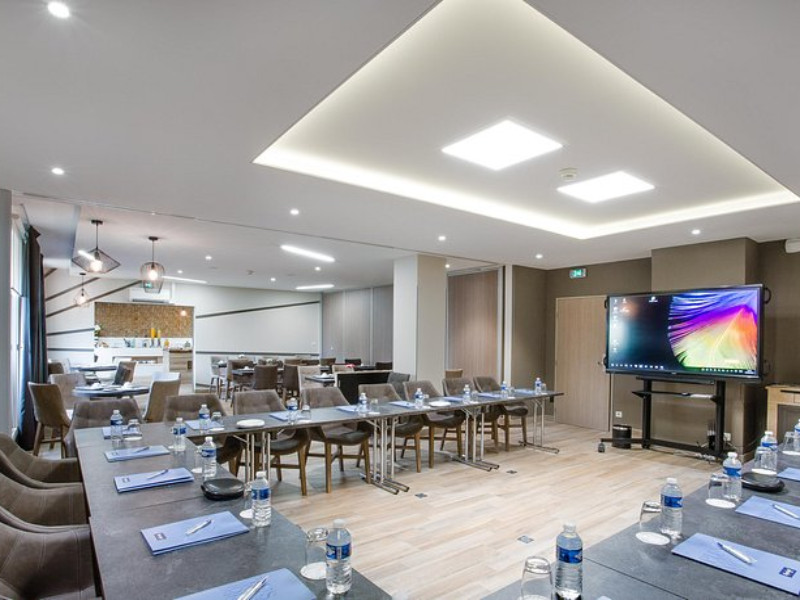 Pour l'organisation de vos séminaires, conférences et réunions professionnelles, le Kyriad Chambéry Centre Curial met à disposition des salles modulables et équipées. Conçues pour répondre aux besoins des entreprises, elles sont dotées de tout le matériel nécessaire : vidéoprojecteurs, écrans, connexion Wi-Fi haut débit et systèmes de sonorisation. La capacité des salles permet d'accueillir différentes tailles de groupes, des réunions en petit comité aux événements plus importants.