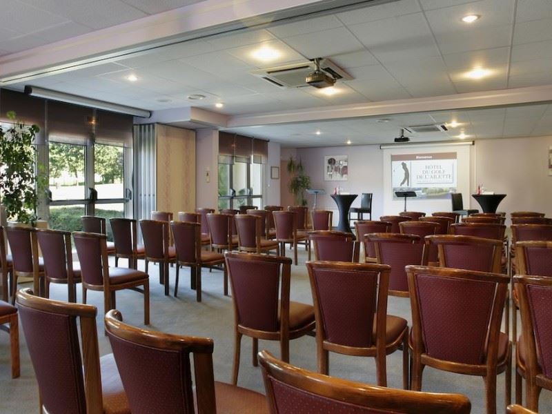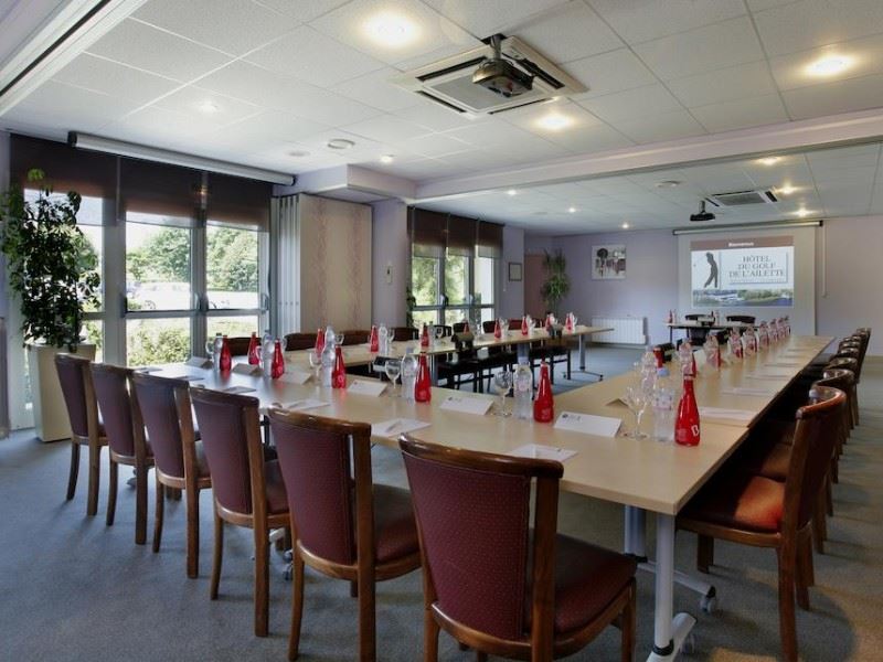 Pour l’organisation de vos séminaires et réunions, l'Hôtel du Golf de l'Ailette met à votre disposition plusieurs salles de réunion et de séminaire modulables. Ces espaces, pouvant accueillir de petites réunions de travail ou de grands congrès, sont dotés d’équipements de pointe : vidéoprojecteurs, écrans, sonorisation et accès Wi-Fi haut débit. La capacité des salles varie, permettant ainsi d’adapter l’espace en fonction du nombre de participants et du type d’événement. La location de salle est flexible, offrant des solutions sur mesure pour répondre aux besoins spécifiques de chaque entreprise.