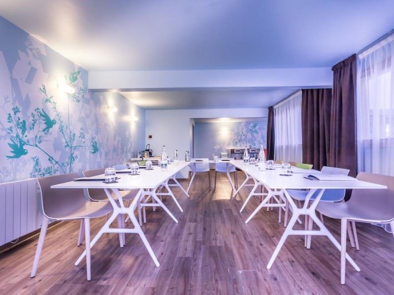 Pour vos séminaires, conférences et réunions, le Grand Aigle Hôtel & Spa met à votre disposition plusieurs salles de séminaire modulables, dotées d’une capacité d’accueil variable. Nos espaces de réunion sont équipés des dernières technologies, notamment des vidéoprojecteurs, des systèmes de sonorisation et une connexion Wi-Fi haut débit. Que vous organisiez une petite réunion d’équipe ou un grand congrès, nos salles s’adaptent à toutes vos exigences en termes de capacité et d’équipement.