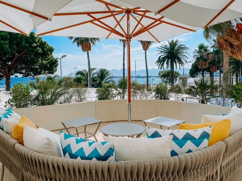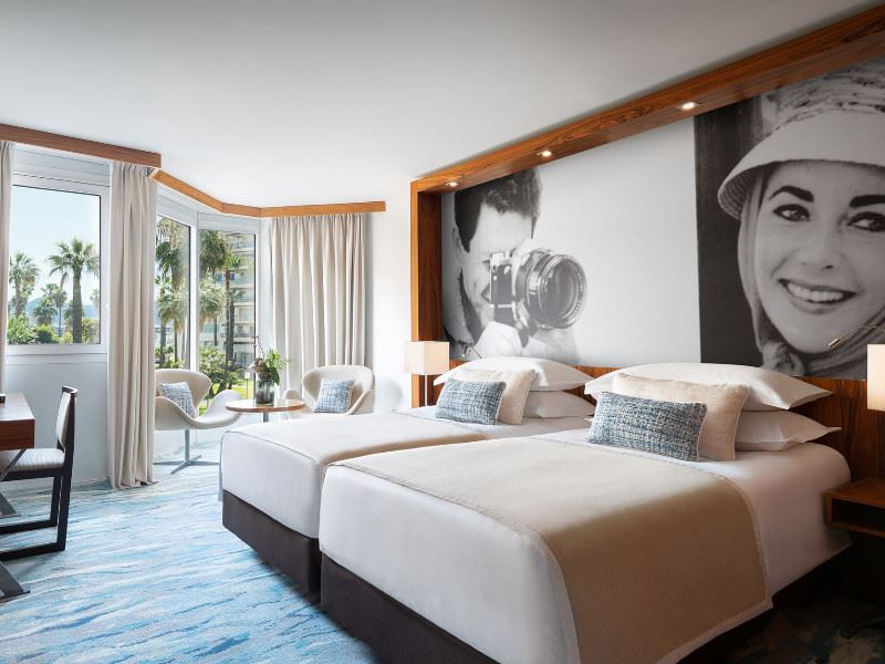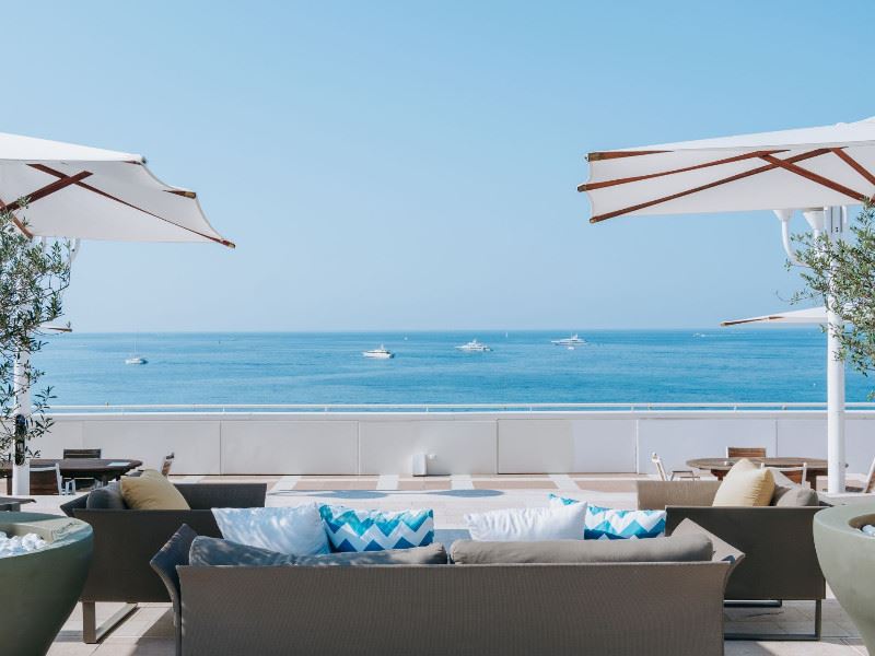 Cet établissement s'impose comme l'unique hôtel de luxe de la Croisette dôté d'une terrasse avec piscine sur le toit ainsi que d'un auditorium privé pouvant accueillir jusqu'à 820 personnes.