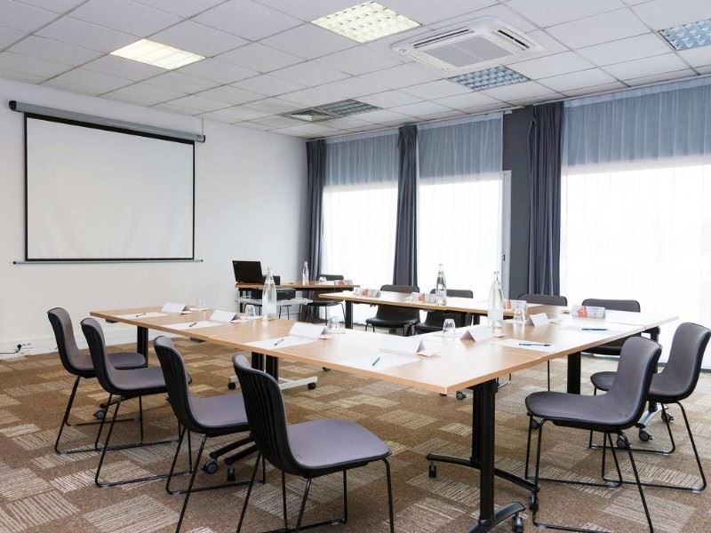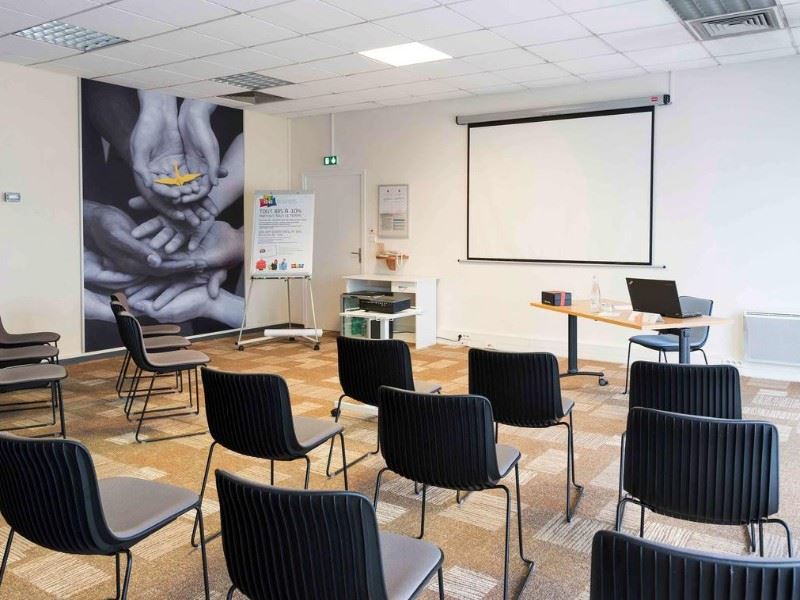 L’Ibis Laval Le Relais d'Armor dispose de plusieurs salles de séminaire et de réunion modulables, adaptées à tous types d’événements professionnels. Nos salles sont équipées des dernières technologies, incluant des vidéoprojecteurs, des systèmes audio de haute qualité et une connexion Wi-Fi haut débit. Elles peuvent accueillir jusqu’à 100 personnes, offrant ainsi une grande flexibilité pour organiser vos réunions, conférences ou ateliers.