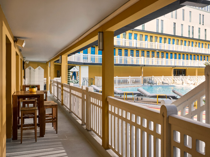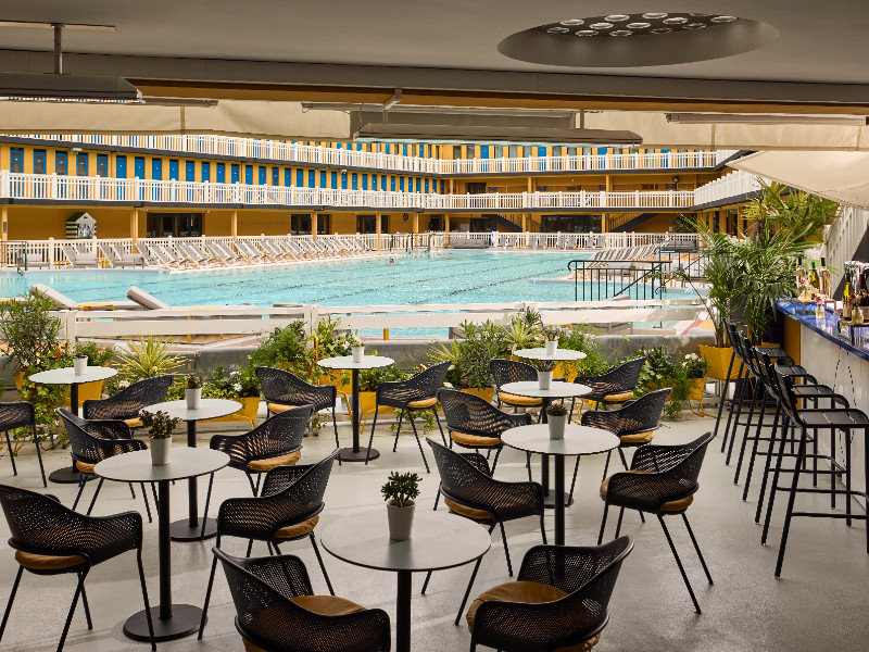 Le bar bikini : Dès l’arrivée des beaux jours, face au Bassin extérieur, ce lieu à l’ambiance de vacances se prête parfaitement aux cocktails et réceptions jusqu’à 50 invités.