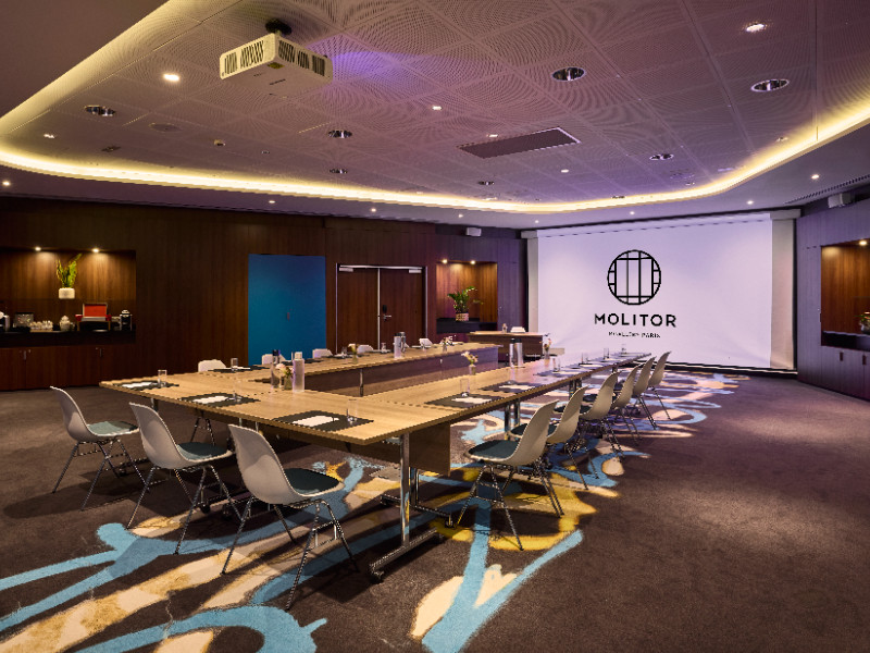 Molitor propose un total de 450 m² de salons modulables parfaitement équipés. Ils peuvent accueillir jusqu’à 430 personnes. De 26 m² à 150m², ils s’adaptent à toutes les configurations : banquet, théâtre, classe, U, cabaret, etc.