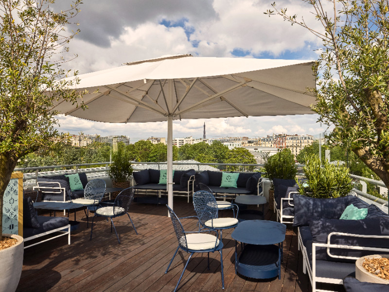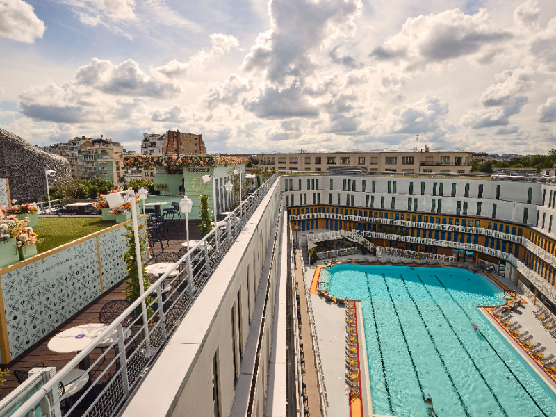 Le solarium : Avec son décor moderne aux allures de beach club et son bar à ciel ouvert, le Solarium vous plonge dans une ambiance branchée. Offrant une vue plongeante sur le Bassin extérieur, il peut accueillir jusqu’à 120 personnes pour des cocktails dînatoires et diverses célébrations. Chapeaux et lunettes de soleil seront un must afin que les convives profitent de sa vue panoramique sur les toits de Paris et des teintes orangées du coucher de soleil.