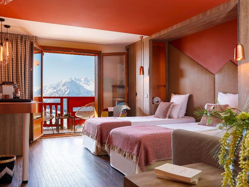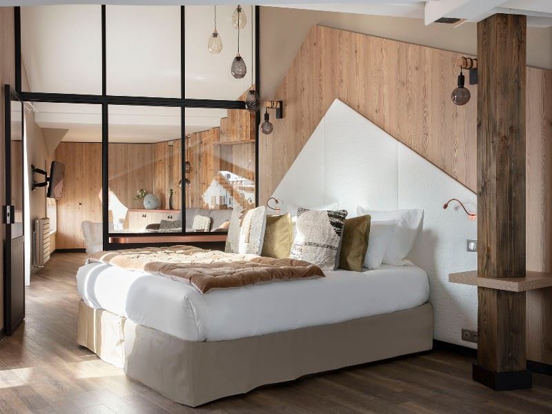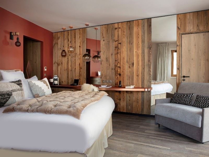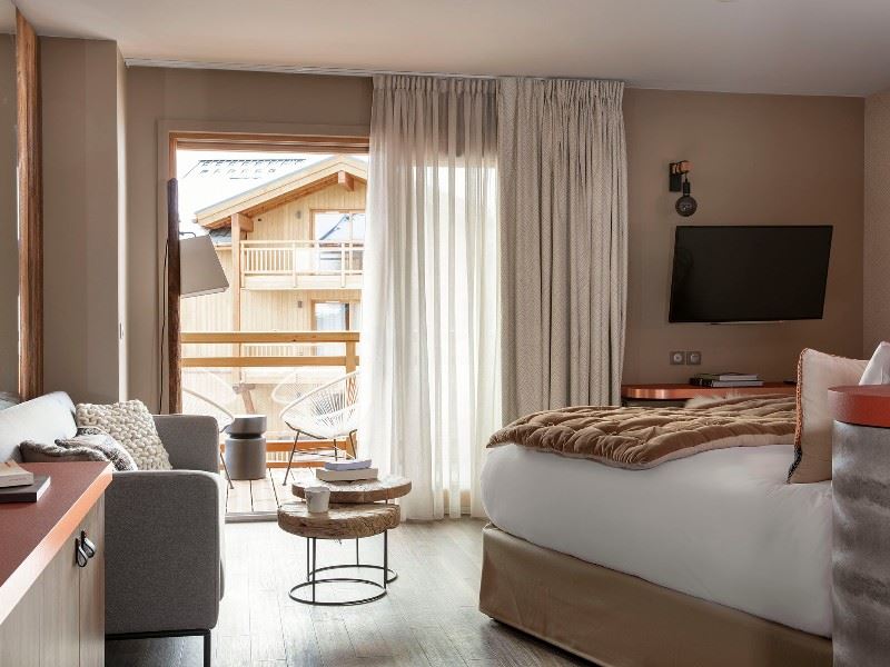 98 chambres dont 18 Suites. Des espaces de vie au style montagne contemporain. Une vue exceptionnelle sur les sommets alpins, la piscine extérieure ou le retour skieur qui se savoure depuis votre terrasse privative. Equipements ergonomiques et connectique de pointe, internet wifi, TV satellite et écran plat, téléphone, coffre-fort et salle de bain.