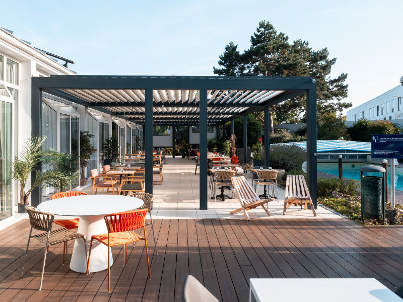 Détendez-vous en savourant notre cuisine traditionnelle au restaurant, au bord de notre piscine, ou à l’ombre de notre superbe pergola.