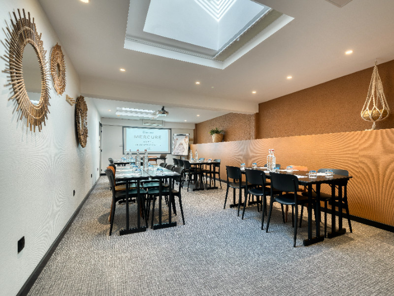 Le Mercure Paris 15 Porte de Versailles, labelisé Clé Verte vous accueille dans un cadre moderne et confortable, idéal pour organiser vos événements professionnels dans la capitale. Avec ses 54 chambres élégantes et 5 salles de réunion modulables à la lumière du jour, l’hôtel offre toutes les conditions pour des séminaires, formations, réunions d’équipe, comités de direction ou cocktails d’entreprise réussis.