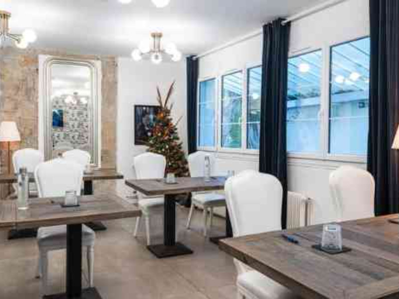 La salle de réception & Le Petit Boudoir : Espaces complémentaires alliant travail et gastronomie bistronomique dans un cadre lumineux et inspirant. Idéal pour séminaires résidentiels et événements d’exception, avec vidéoprojecteur, paperboard, papier, stylos, Internet fibre optique et Wi-Fi.