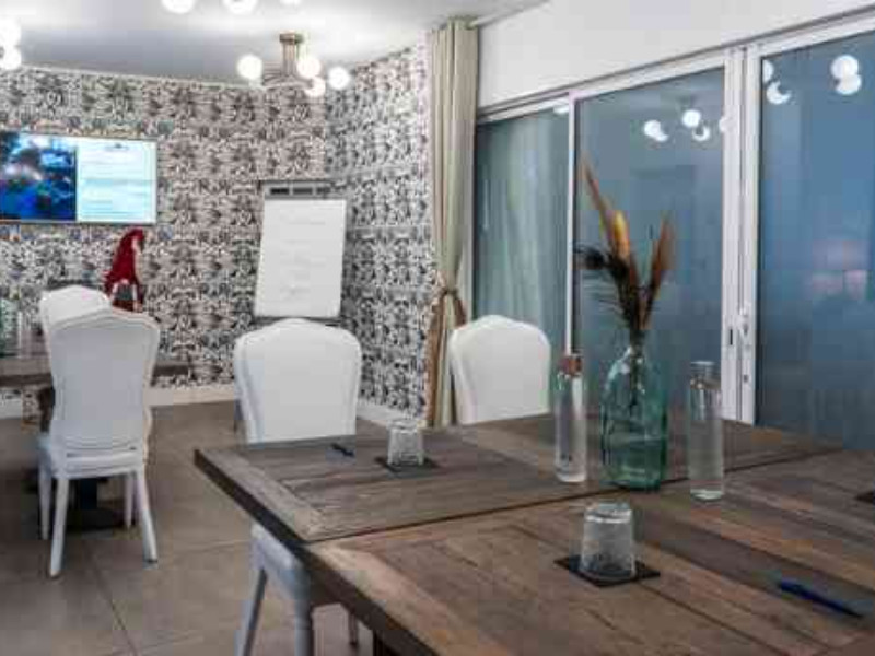 La petite salle de réception : Salle intimiste et baignée de lumière naturelle, idéale pour réunions, comités de direction et ateliers. Entièrement équipée avec paperboard, vidéoprojecteur, papier et stylos, connexion Internet fibre optique et Wi-Fi haut débit.