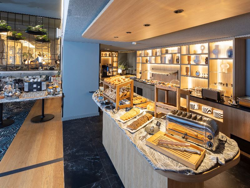 Dès l’ouverture, testez l’une de nos formules petit-déjeuner : la « classique » avec viennoiserie, le » Français » avec pain/beurre/confiture ou encore le » détox » pour faire le plein d’énergie ! Puis le midi, place au snacking où le chef vous propose des plats de saison à partager, des salades, risotto et pasta du jour. Sans oublier le fabuleux chariot à dessert où vous pourrez choisir parmi les pâtisseries faites maison, aussi belles que bonnes.