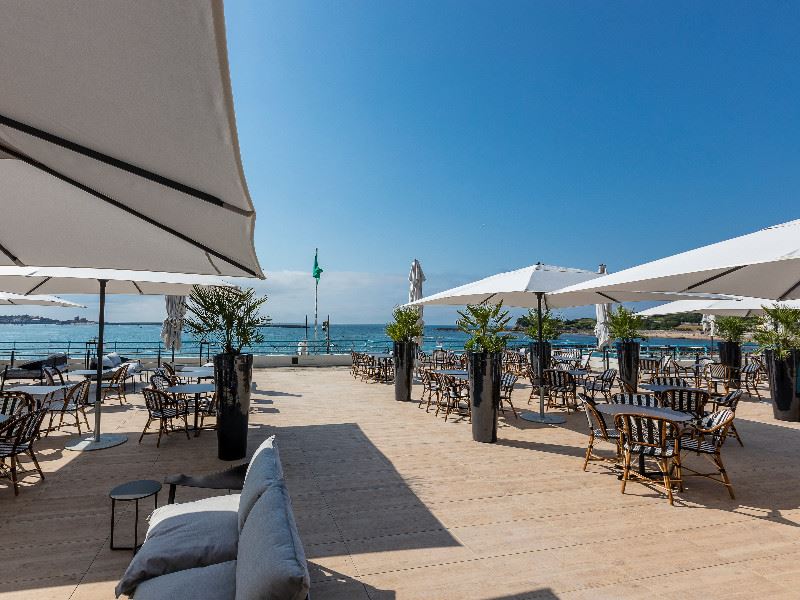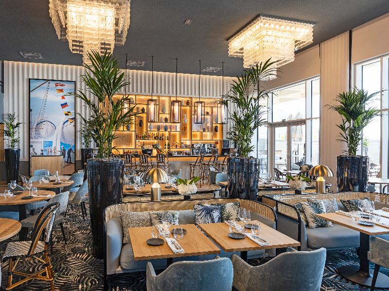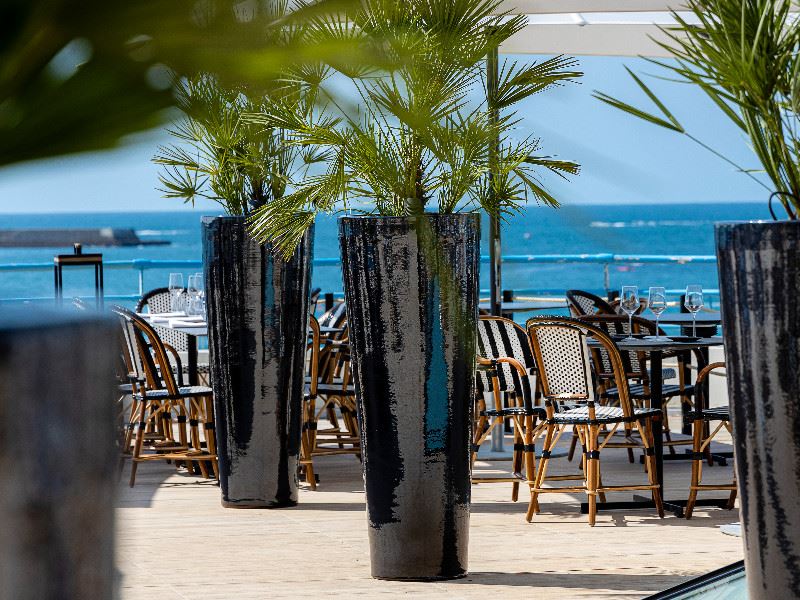 Trait d’union avec la mer, le restaurant L’Atlantique est une destination, une expérience à vivre. Une ambiance fraîche, lumineuse mêlant avec subtilité les codes années 30 apportant élégance et raffinement, les codes balnéaires et les matières naturelles effaçant la limite intérieur/ extérieur et ouvrant le restaurant sur la mer et les codes basques où l’éclectisme du mobilier et des partis-pris d’aménagement irriguent le lieu de convivialité.