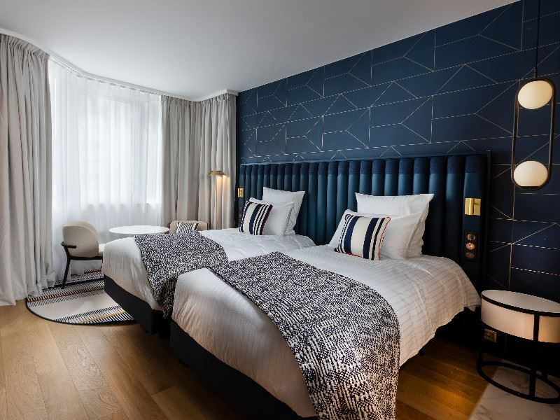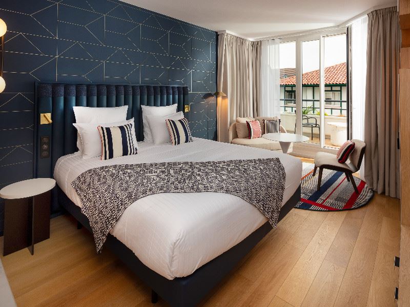 Concernant l’univers des 106 chambres de l’hôtel, l’architecte a une nouvelle fois choisi de s’inspirer des années 30 et de mêler l’ambiance balnéaire et la convivialité basque. Les chambres sont lumineuses et les salles de bains bénéficient toutes de la lumière naturelle. Mais la grande nouveauté de ces travaux vient de la création de 10 nouvelles suites dont 4 duplex avec terrasse et une vue plongeante sur l’océan.
