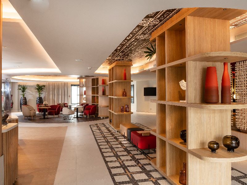 Le projet de rénovation de grande envergure a permis de sublimer ce lieu sans pour autant altérer l’âme et l’identité Art Déco du site, tout en respectant et intégrant la culture traditionnelle basque. En plus du choix de certaines couleurs emblématiques de la région (le rouge et le bleu…), les équipes ont souhaité également mettre en lumière les artisans du Pays Basque. Partout dans l’établissement, les clients peuvent découvrir des objets et de la décoration locale, telles que les Poteries Goicoechea, les claustras réalisés par Alki ou les oeuvres de Franck Cazenave, Serge Strippentoir ou encore Peio Etxe…