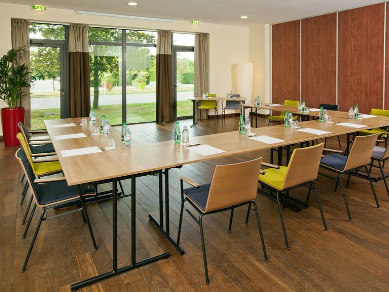 Pour vos événements professionnels, Residhome Lieusaint Suites Paris Sénart offre plusieurs salles de séminaire et de réunion modulables, équipées des dernières technologies. Chaque salle est dotée de vidéo projecteurs, de systèmes de sonorisation de haute qualité et de connexions Wi-Fi rapides, garantissant la réussite de vos présentations et conférences.