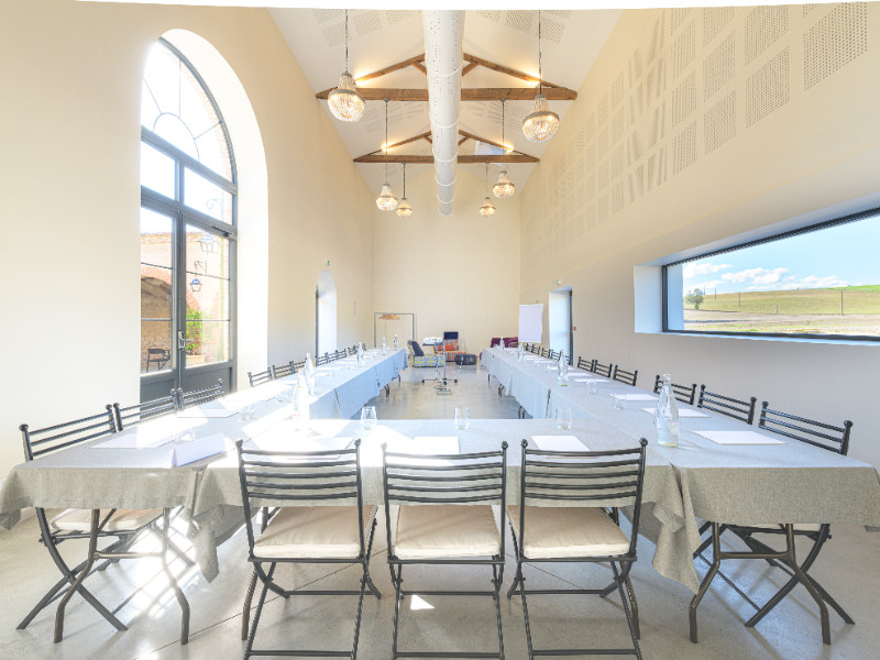 Majestueuse maison de maître nichée au cœur d’un vaste parc arboré, le domaine dispose de dix chambres, de plusieurs salons et d'un magnifique patio intérieur bordé d'arcades. La salle plénière, baignée de lumière et dotée d’une superbe vue, est équipée de matériel haut de gamme (Wifi, sonorisation Hi-Fi, vidéoprojecteur, climatisation) et peut accueillir 70 personnes. Des salons privatifs, une salle de sous-commission, un business center et des bornes de recharge électrique sont également disponibles.